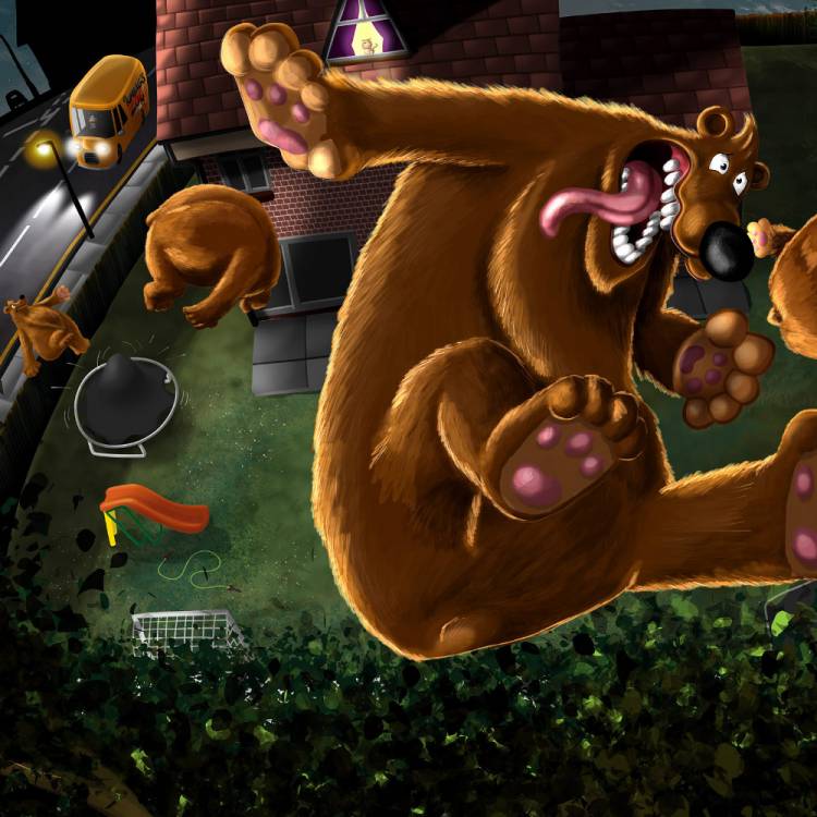 Trampolines, ponds and garden sheds, an escaped bear on the run who loves to dance and eat cake and a grumpy zoo keeper with a very special nose.